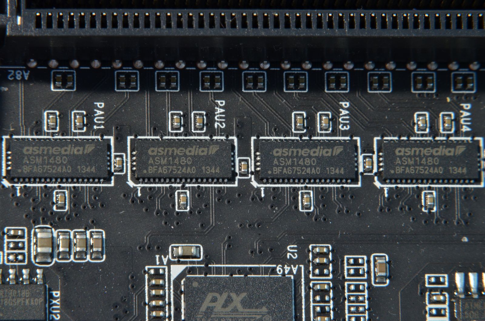 De asemenea, mai sunt prezente 8 switch-uri PCI-Express Asmedia ASM1480 şi un buffer PCI-Express Gen 3.0 produs de Integrated Device Technology.