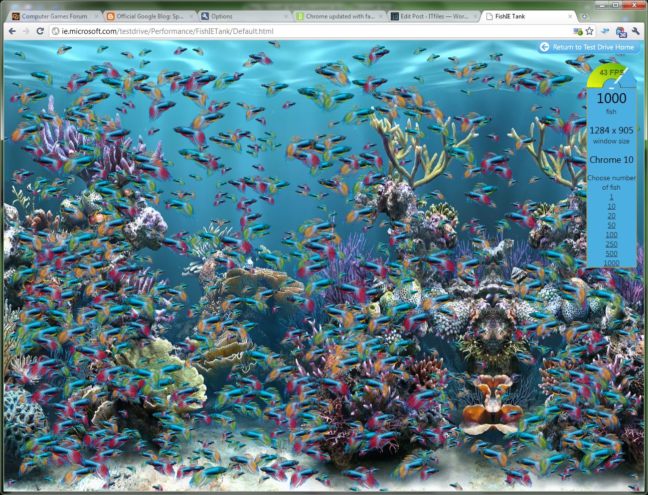 Weird. Cu 1 peste am 24-25 fps. Cu 500 de pesti am 20-21 fps.