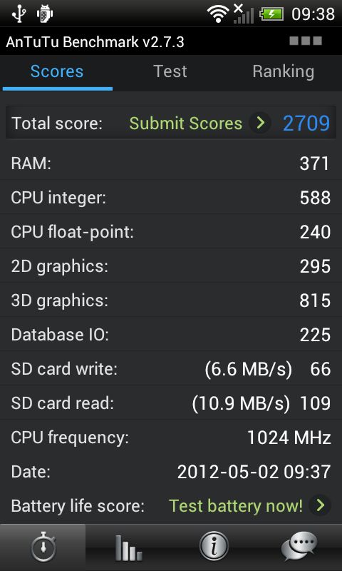 Din păcate, ca de obicei, HTC mă supără cu alegerea memorie și stocării interne. One V oferă o memorie RAM cu o capacitate de 512MB, care uneori se simt ca fiind insuficienți într-un multitasking intensiv, și o stocare internă cu o capacitate de 4GB dar din care utilizatorul se poate bucura doar de… 0,94GB. În numele zeilor, DE CE?!? Din fericire există un slot MicroSD dar insatisfacția pentru capacitatea mică disponibilă pentru aplicații rămâne.