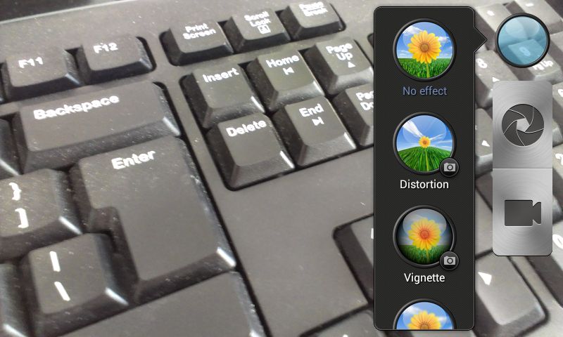Interfața camerei a fost complet refăcută, acesta oferind în același loc atât butoanele pentru captura foto cât și cea video. Lângă acestea se găsesc butoanele pentru accesul la galeria foto/video și alegerea unor filtre foto, partea opusă oferind alegerea scenei, controlul bliț-ului și setările generale. Pe lista noutăților se remarcă, pe lângă clasicele scene standard precum macro sau portrait, și Group Portrait, care permite captura multiplă și procesarea automată a imaginilor pentru selecția celor care au clipit, Panorama, care are însă un mod de lucru cu giroscopul destul de stângaci și da rateu cam des, și HDR. Noua cameră din One V se poate laudă și cu zero-lag shutter și captura în rafală rapidă, care permite ulterior selectarea cele mai bune imagini, și un timp de pornire extrem de mic. Nu lipsesc opțiunile de focalizare automată, un touch focus rapid și detecția zâmbetelor.