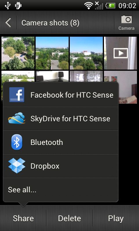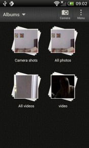 Galeria de imagini, locul unde sunt centralizate atât imaginile și fișierele video capturate cât și cele adăugate din alte surse, oferă un unic mod de vizualizare general sub forma unei stive de thumbnailuri. Imaginile și fișierele video pot fi partajate via Facebook, Google+, Twitter, Dropbox, SkyDrive, Picasa, Flickr, email sau MMS, existând și un editor simplu care oferă crop, rotire și ajustarea parametrilor de bază ai imaginii. Pentru editarea secvențelor video nu este oferit însă decât un opțiunea de decupare a bucăților interesante. După cum am amintit în introducere, One V nu oferă suport DLNA deci singura metodă de partajarea imaginilor sau secvențelor video este redarea locală cu restul lumii adunată intim în jurul ecranului.