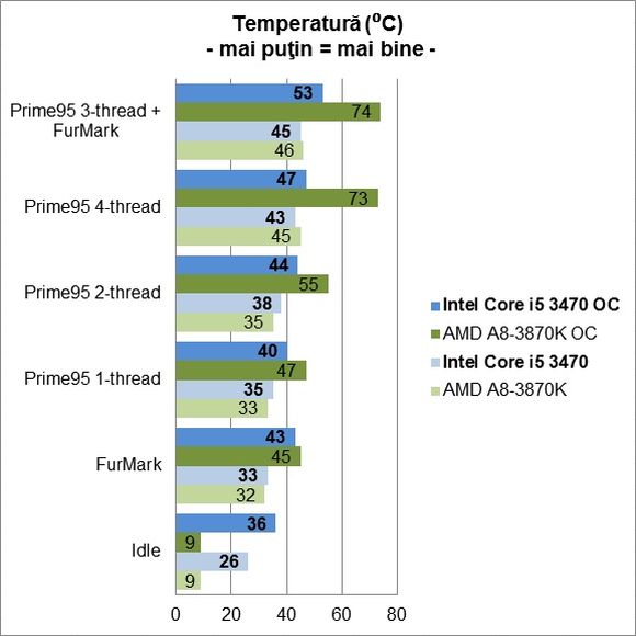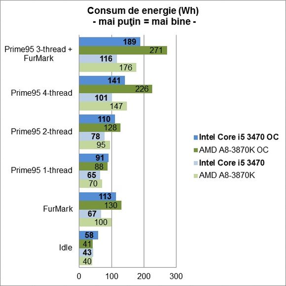 Rezultatele prezentate demonstrează cât se poate de clar că Intel Core i5-3470 reprezintă un APU excelent pentru birourile care au nevoie de putere de procesare şi chiar pentru HTPC-uri cu pretenţii. Din păcate însă, el nu se descurcă prea bine în mediul 3D; spre deosebire de A8-3870K, cei interesaţi de rularea jocurilor, chiar şi ocazional, vor fi nevoiţi să achiziţioneze şi o placă video dedicată.