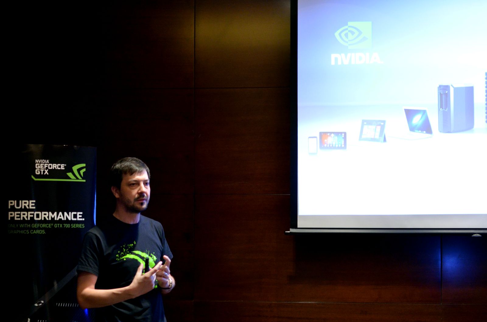 Deşi evenimentul a avut în centrul atenţiei jocurile pe PC, David Koblizek a atras atenţia şi asupra faptului că industria jocurilor a evoluat şi nu se mai rezumă acum la PC şi console. Dispozitivele mobile atrag tot mai mulţi utilizatori şi tot mai mulţi gameri, motiv pentru care NVIDIA a realizat consola portabilă Shield, despre care aţi auzit de nenumărate ori. Un prototip al acesteia dintr-un stadiu intermediar al dezvoltării a fost prezent şi la evenimentul de ieri pentru a permite celor prezenţi să simtă pe propria piele ce înseamnă jocurile în mişcare.