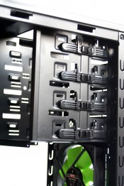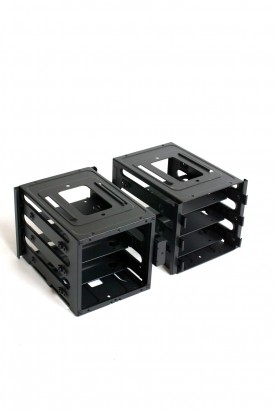 Joujye GT5-U312D-FD este prevăzută cu două cage-uri pentru harddisk-uri, ambele detaşabile şi ambele dotate cu câte trei tray-uri pentru montarea unui total de şase harddisk-uri. Trebuie menţionat însă că dacă doriţi să montaţi două ventilatoare în podeaua carcasei, va trebui să renunţaţi la unul dintre cele două cage-uri.