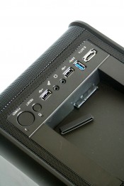 Rămânând la capitolul stocare, trebuie să menţionez şi cele patru bay-uri de 5.25”, cu menţiunea că unul dintre ele este dotat cu un tray detaşabil ce permite montarea unui SSD de 2.5”, a unui HDD de 3.5” sau a unei unităţi Floppy Disk.