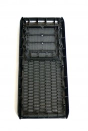 Dacă întoarcem carcasa invers, observăm că şi partea inferioară este perforată şi prevăzută cu filtre împotriva prafului. În spatele acestora, utilizatorul poate monta unul sau două ventilatoare de 120 sau 140mm, în funcţie de lungimea sursei de alimentare folosite.