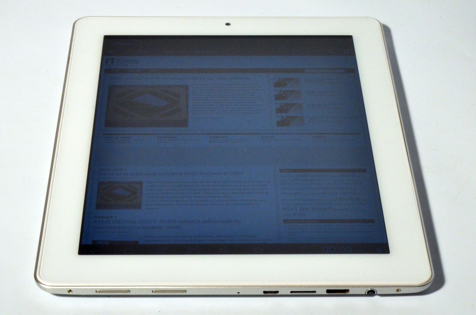 Fără doar şi poate, ecranul IPS este punctul forte al lui Mediacom SmartPad 9.7 HD S4. Diagonala de 9.7” ascunde un aspect 4:3 apreciat de cei care îndrăgesc cărţile electronice, dar mai ales o impresionantă rezoluţie de 2048×1536 pixeli. Aşa se face că vorbim de o densitate de 335DPI, pe care sunt convins că orice utilizator modern o va aprecia. Desigur, în realitate rezoluţia utilizabilă este redusă la 2048×1440 pixeli (în modul Landscape) sau 1536×1952 pixeli (în modul Portrait), restul fiind ocupat de controalele tactile şi de notificări. Chiar şi aşa, vorbim însă de o densitate de 320DPI, ce nu poate fi trecută cu vederea.
