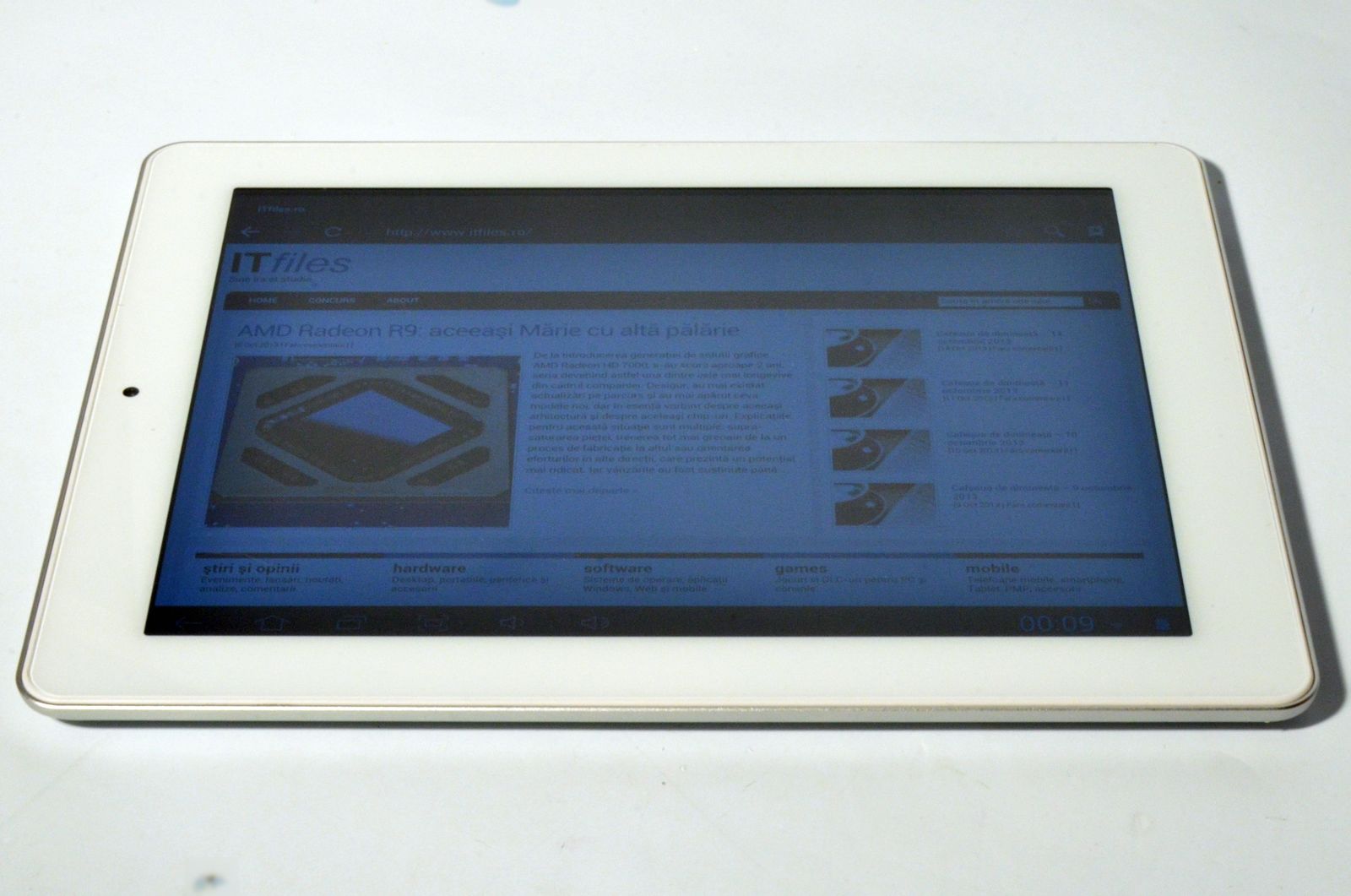 Calitatea imaginilor redate este neaşteptat de bună pentru un Tablet PC din acest segment, iar fenomenul de Ghosting are o prezenţă slabă, fiind cu greu sesizabil. Unghiurile de vizibilitate ar fi putut fi mai bune după părerea mea, deşi trebuie să recunosc că o oarecare afectare a culorilor este perfect normală în cazul unui ecran atât de mare.