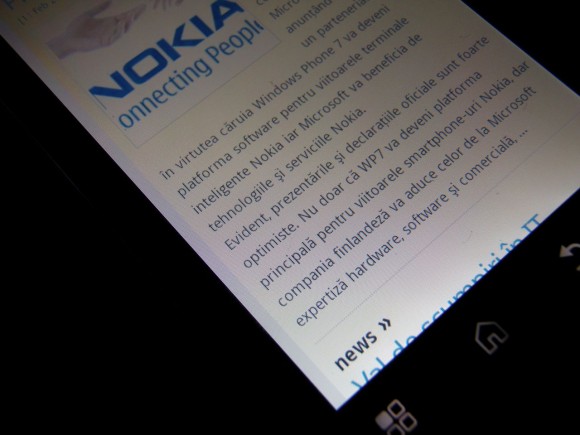 Ca şi în cazul modelului Milestone, ecranul are o rezoluție de 480 x 854 pixeli, 3.7” diagonală şi este de tip TFT cu o adâncime True Color. Fiind vorba un terminal ieftin, nu aveam prea mari aşteptări de la ecranul oferit de Defy şi aşa a şi fost. Culorile acestuia sunt naturale, unghiurile de vizualizare sunt bune iar luminozitatea este ridicată, însă va trebui să o treceți pe control manual deoarece ajustarea automată este uneori prea agresivă iar ecranul devine cam întunecat. Lizibilitatea este bună, cei 265ppi fiind optimi atât pentru afişarea obiectelor grafice cât şi pentru randarea în bune condiții a textului. Contrastul este doar rezonabil şi este departe de nivelul cu care ne-au obişnuit ecranele AMOLED, suprafaţa protectoare reflectă prea puternic lumina ambientală iar bleeding-ul ecranului devine evident în momentul vizionării unor materiale cu luminozitate scăzută. O prestație relativ modestă din acest punct de vedere, dar pe măsura preţului de numai 1050 de lei. Suprafaţă tactilă este de tip capacitiv şi s-a comportat impecabil.