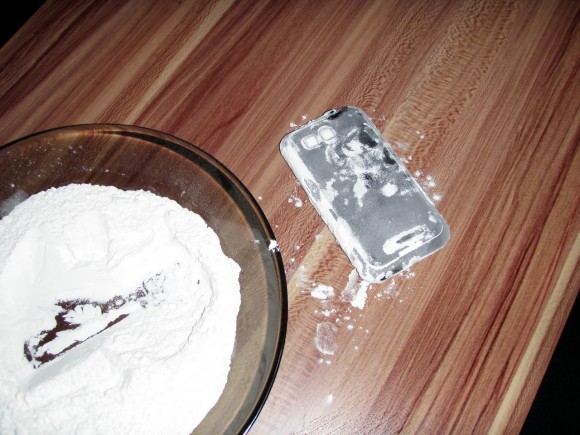 Rezistenţa la praf a fost ceva mai greu de simulat deoarece praful sau nisipul nu sunt chiar materialele pe care sa le păstrez în casă. După o scurtă deliberare, am decis că făina albă oferă o granulație similară cu cea a prafului, aşa că sărmanul terminal a mai trecut prin câteva minute umilitoare. Ca şi în cazul probei apei, acesta a supravieţuit, tot ce a trebuit sa fac ulterior fiind doar curăţarea difuzorului cu o periuţă fină.