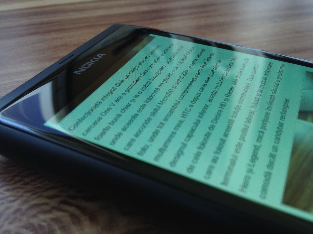Se remarcă totuși două aspecte negative pe care N9 nu le-a avut: controlul automat al luminozității face reglaje prea conservatoare, ceea ce ar putea lăsa impresia unui ecran întunecat până la activarea ajustării manuale, total nerecomandată însă dacă nu vreți să vedeți cu ochiul liber cum se scurge bateria, iar rotirea terminalului dă imediat o ușoară tentă albăstruie imaginii, cel mai probabil din cauza stratului protector de sticlă.