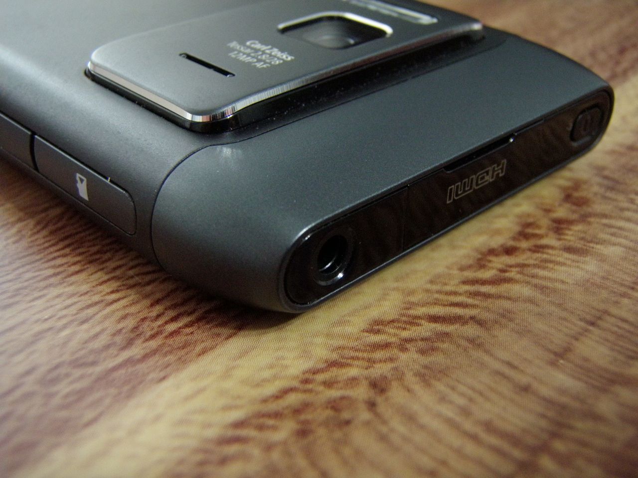 Partea din spate este şi ea la fel de simplă, singurul element fiind suportul masiv al camerei, cel care duce de altfel grosimea terminalului la cei 12,9 milimetri menționați mai sus. Optica puternică a terminalului nu putea însă ocupa un loc mai mic, ca să nu mai vorbim de lampa mare cu xenon pentru fotografiile în lumina scăzută. Obiectivul nu este protejat cu o clapetă însă Nokia ne-a asigurat că materialul protector este un plastic suficient de dur pentru a proteja perfect sistemul optic. Sa sperăm că aşa este.