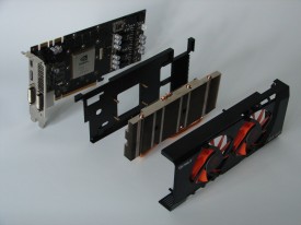 Pachetul este destul de sărac, rezumându-se la ghidul de instalare, discul cu drivere, un convertor de semnal video DVI-to-VGA şi un adaptor de alimentare de la doi conectori de tip MOLEX la un conector cu şase pini.