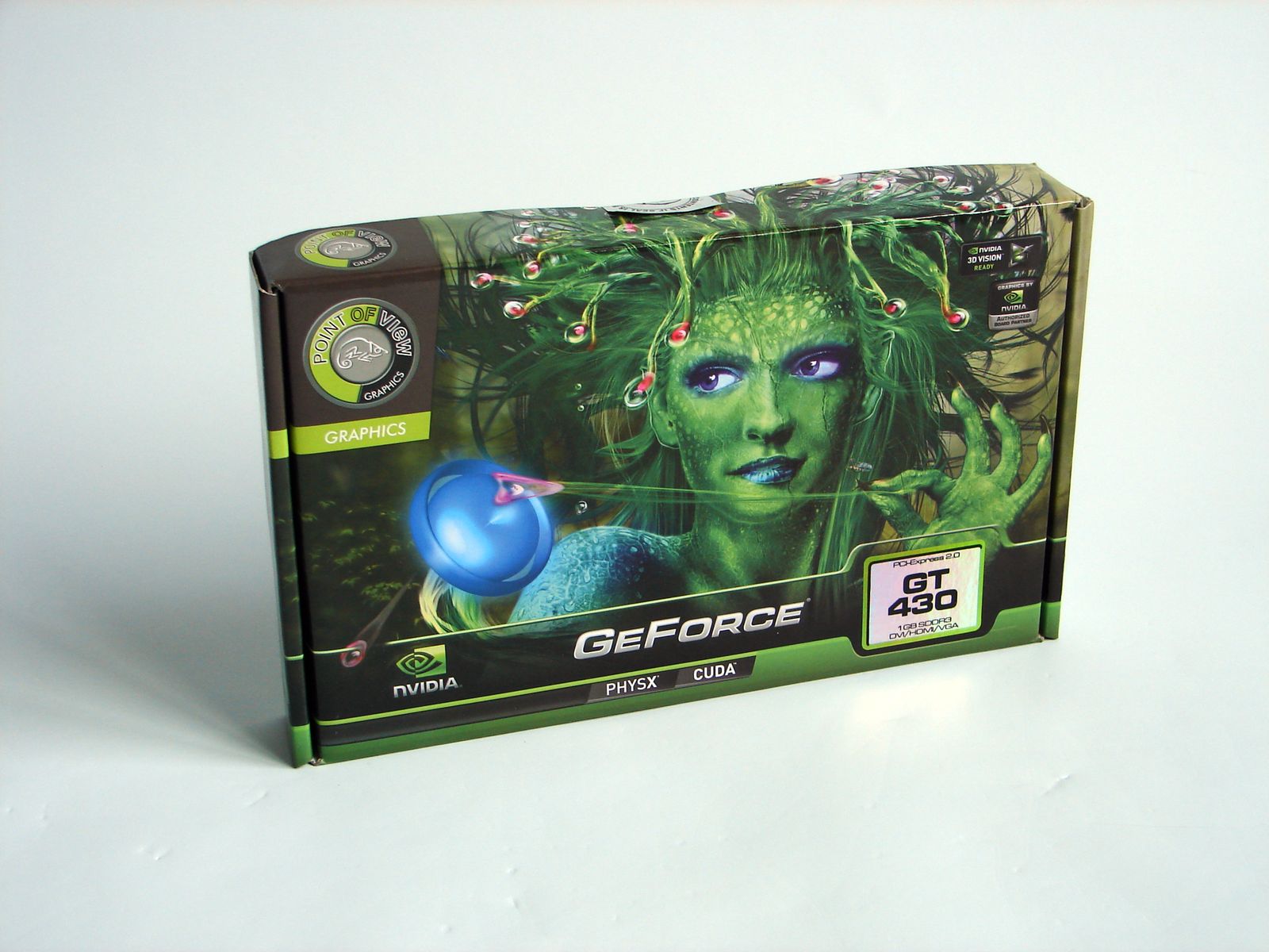 Pentru a testa performanţele oferite de GeForce GT 430, am ales o implementare oferită de Point of View – modelul VGA-430-A1. Pachetul este destul de sărăcăcios, lucru specific unui model Entry Level. Pe lângă placa video, el nu conţine decât un manual de instalare şi CD-ul cu drivere.