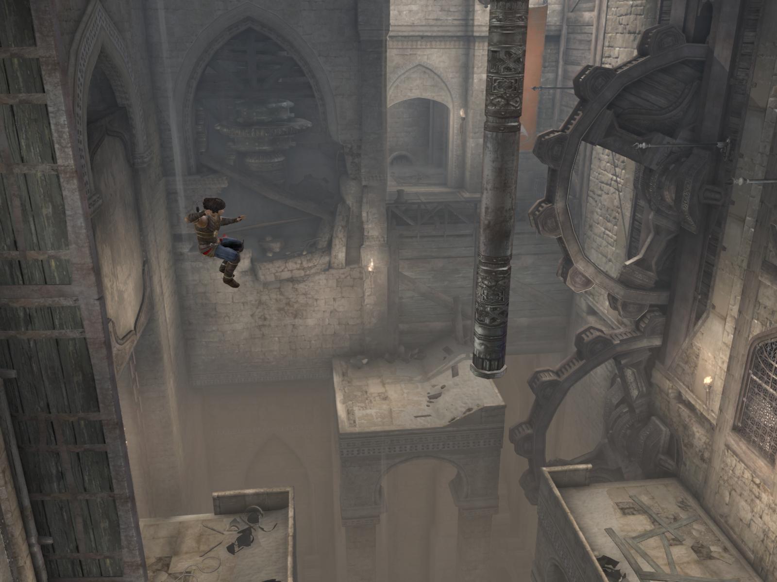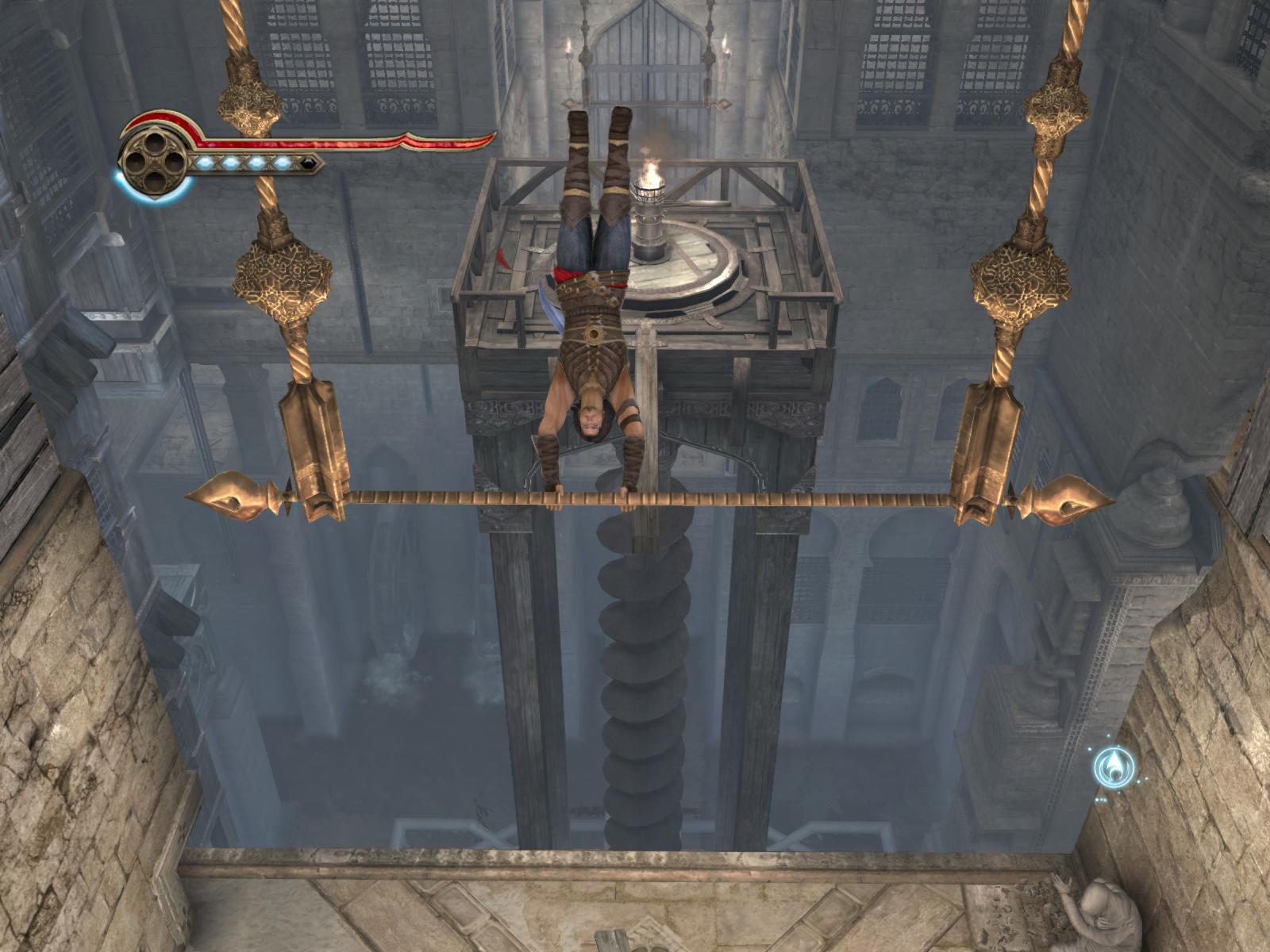 Asemenea stâlpilor din piatră şi a prăjinilor din fier, coloanele de apă ies din ziduri orizontal sau vertical pentru a juca rol de intermediare în secvenţele de salturi şi rostogoliri. Combinaţiile nu sunt noi dacă aţi mai avut de-a face cu seria: salt, rostogolire, salt; wallrun, salt, rostogolire, căţărare pe ziduri în locuri speciale. Apa însă nu rămâne îngheţată la nesfârşit, puterile prinţului având şi ele o limită, astfel că toate aceste secvenţe sunt de fapt contra-timp.