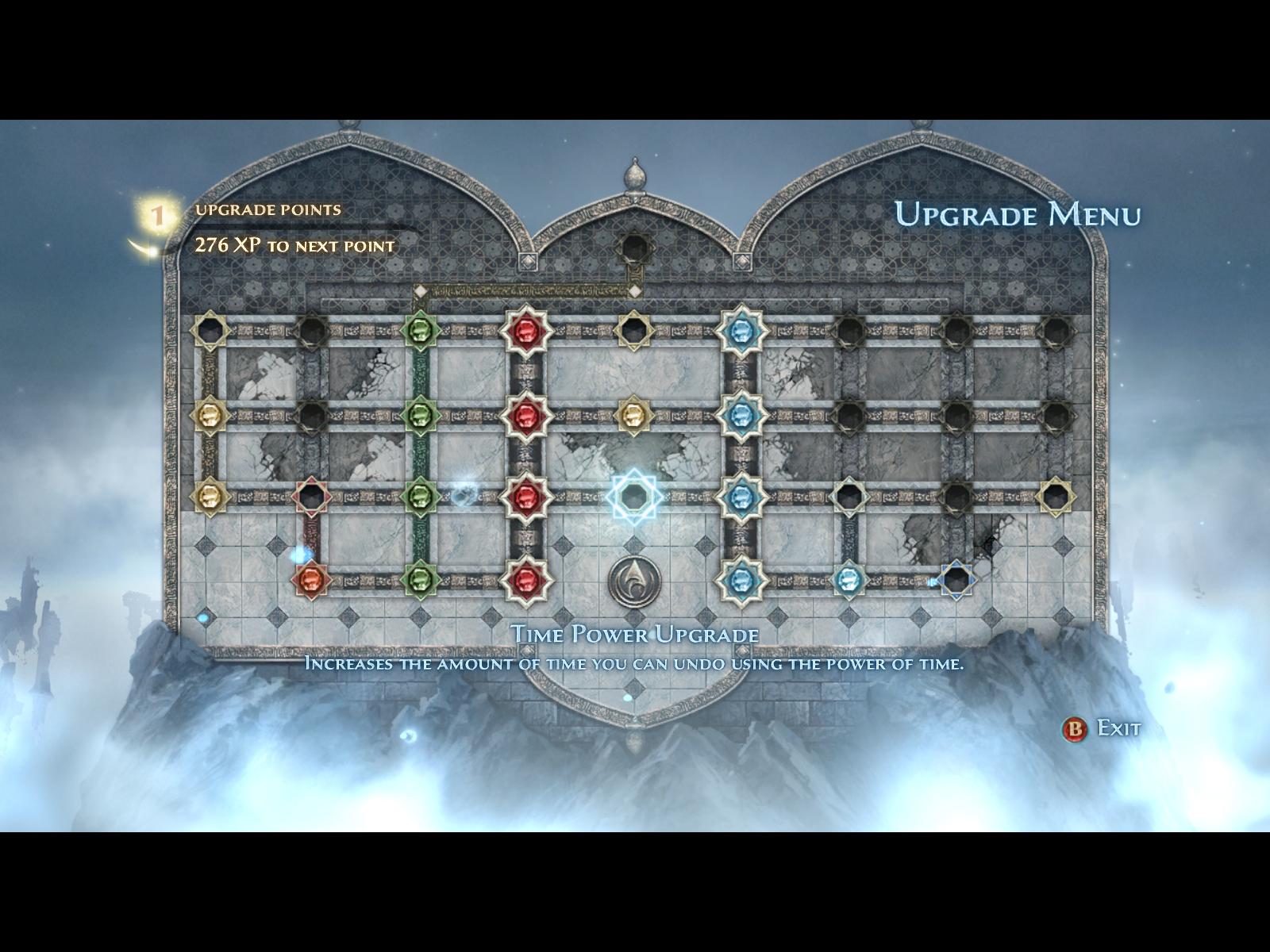 Aceste patru magii sunt accesibile via un meniu de upgrade bazat pe puncte acumulate în lupte şi din spargerea sarcofagelor secrete. De asemenea, anumite acţiuni din joc oferă achievement-uri Uplay (componenta online tip Battle.net a Ubisoft, accesibilă din meniul principal al jocului) cu ajutorul cărora mai puteţi cumpăra level-up-uri şi debloca o arenă separată după terminarea jocului.