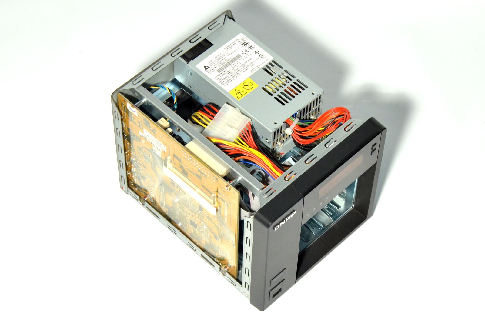 Din cele prezentate până acum, cred că aţi înţeles deja că avem de a face cu o „jucărie” serioasă. QNAP TS-469 Pro este însă chiar şi mai mult de atât, este un adevărat sistem de calcul ce are trasate sarcini bine definite. Şi pentru a vă demonstra acest lucru, voi începe prin a vă prezenta ce ascunde sub carcasa metalică. Trebuie să vă avertizez totuşi că demontarea este migăloasă din cauza numărului ridicat de şuruburi şi că atrage anularea garanţiei produsului.
