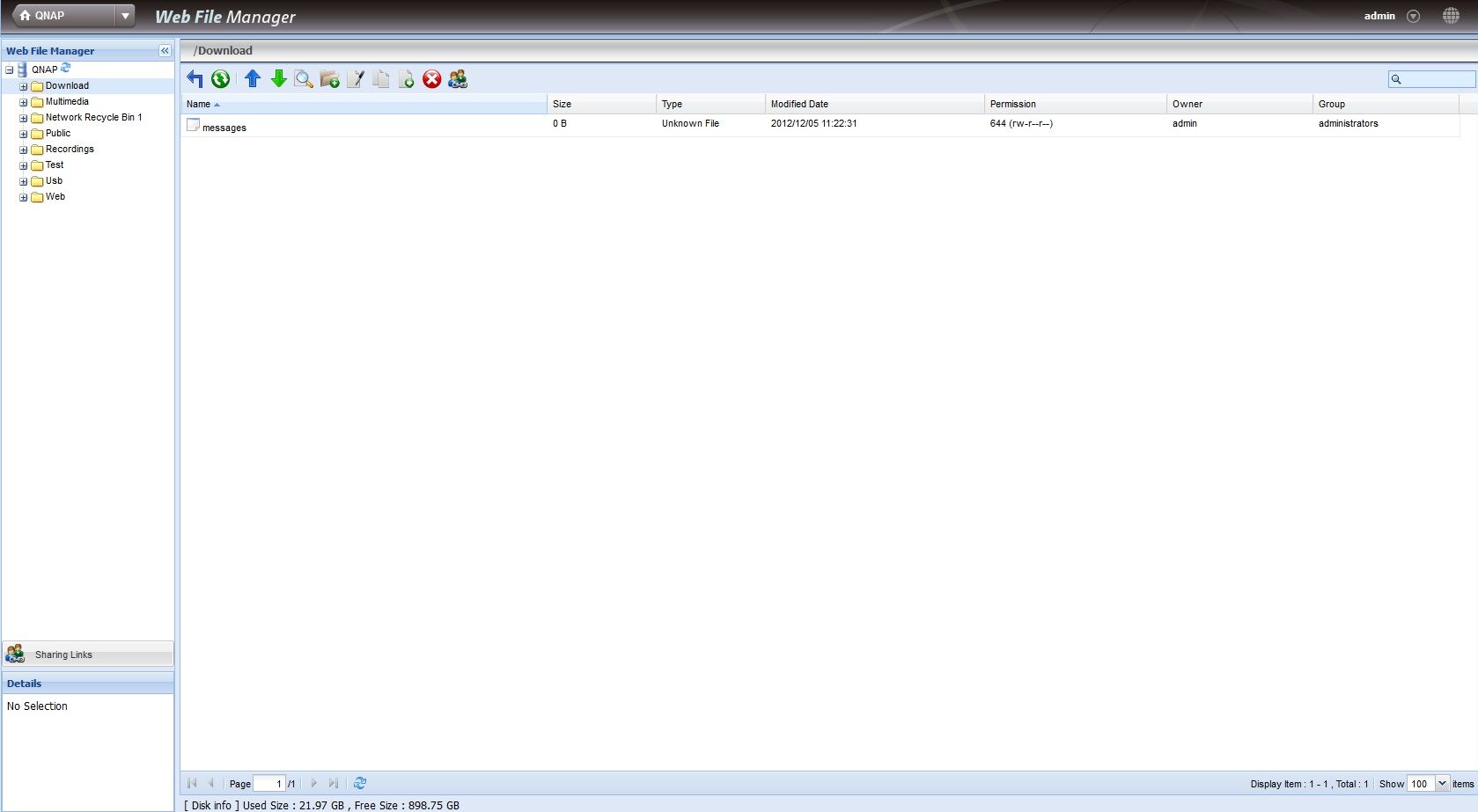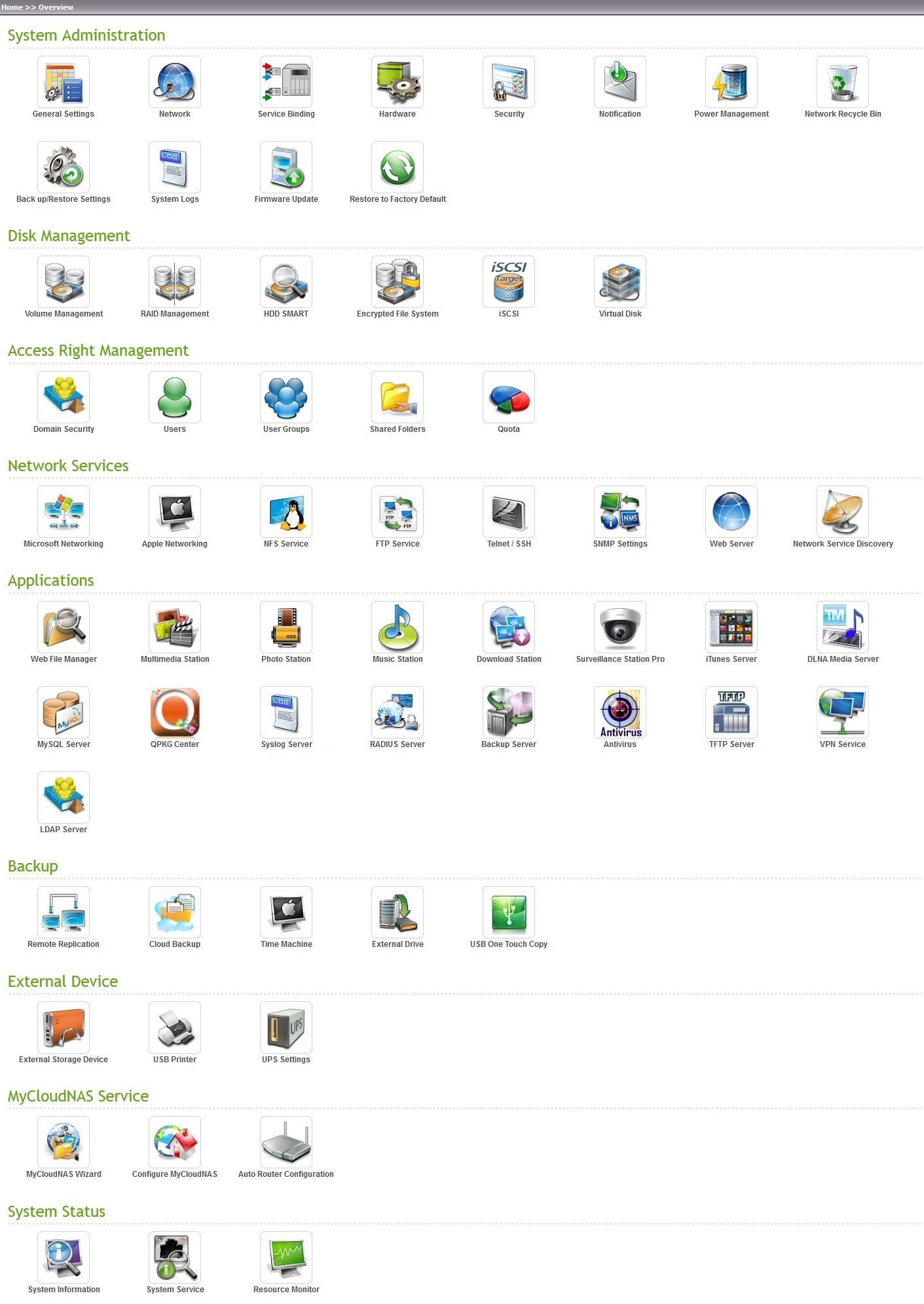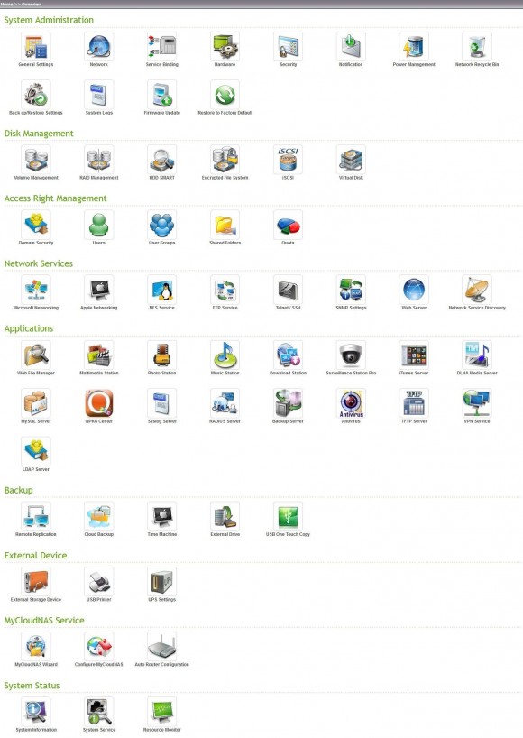Odată instalat şi pornit, QNAP TS-469 Pro s-a dovedit extrem de uşor de utilizat şi configurat, beneficiind de o interfaţă intuitivă şi rapidă. Meniul principal afişat după introducerea numelui de utilizator şi a parolei este unul surprinzător de prietenos şi prezintă utilizatorului serviciile disponibile, instalate şi activate.