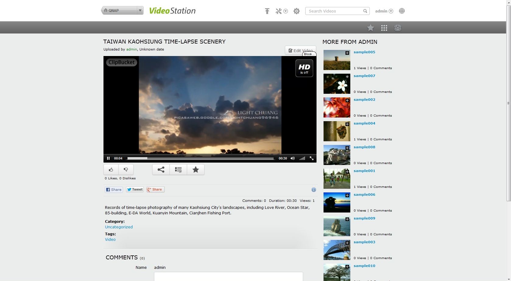 Trebuie totuşi să precizez că, din motive pe care nu le-am înţeles, nu am putut accesa posturile de radio disponibile în listă, acestea rămânând la stadiul de „Connecting”. De asemenea, în cazul conţinutului video ar trebui să aveţi grijă ce formate vă alegeţi deoarece, la fel ca şi YouTube, QNAP TS-469 Pro nu se împacă bine cu prea multe. Personal, vă recomand să optaţi pentru MP4, care pare să nu dea greş niciodată. O problemă mai mare în opinia mea o reprezintă limitarea la 2GB pentru fişierele video, dar aceasta a fost probabil impusă din motive ce ţin de protecţia drepturilor de autor. Cu alte cuvinte, QNAP TS-469 Pro oferă utilizatorilor propriul lor YouTube, la o scară mai mică. Video Station dispune chiar şi de funcţie Share pentru reţelele de socializare.