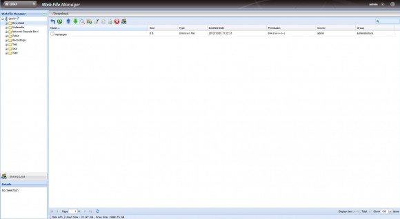 Avem şi un manager web de fişiere, care permite utilizatorului să încarce şi să descarce conţinut de la distanţă, direct din browser.