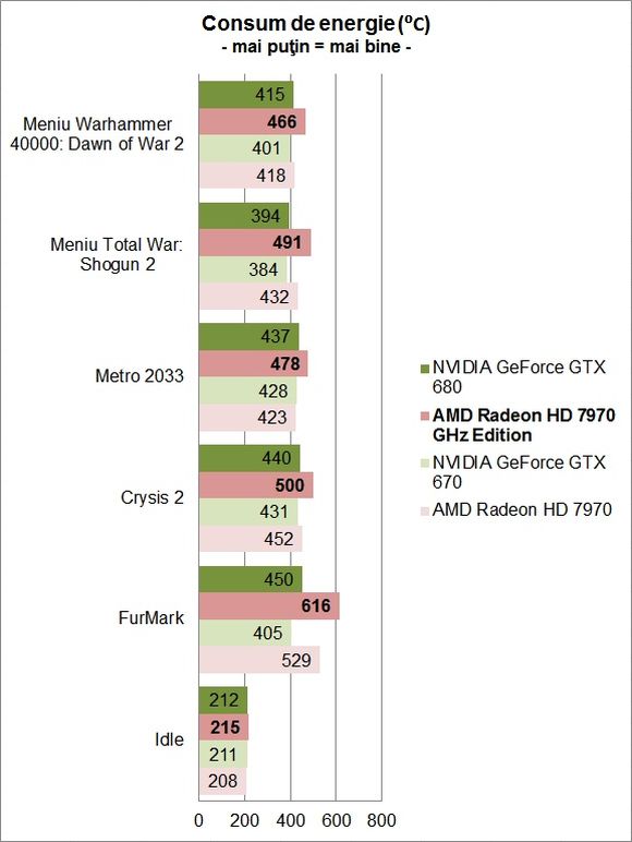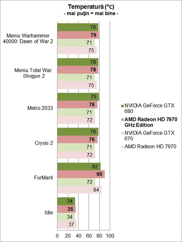 Aşa cum reiese din testele rulate, Radeon HD 7970 GHZ Edition reuşeşte ceea ce probabil că şi-a propus şi anume să se ridice deasupra modelului GeForce GTX 670. Desigur, vorbim aici strict de performanţele înregistrate la frecvenţele implicite; overclocking-ul reprezintă un alt subiect şi a fost tratat cu altă ocazie.