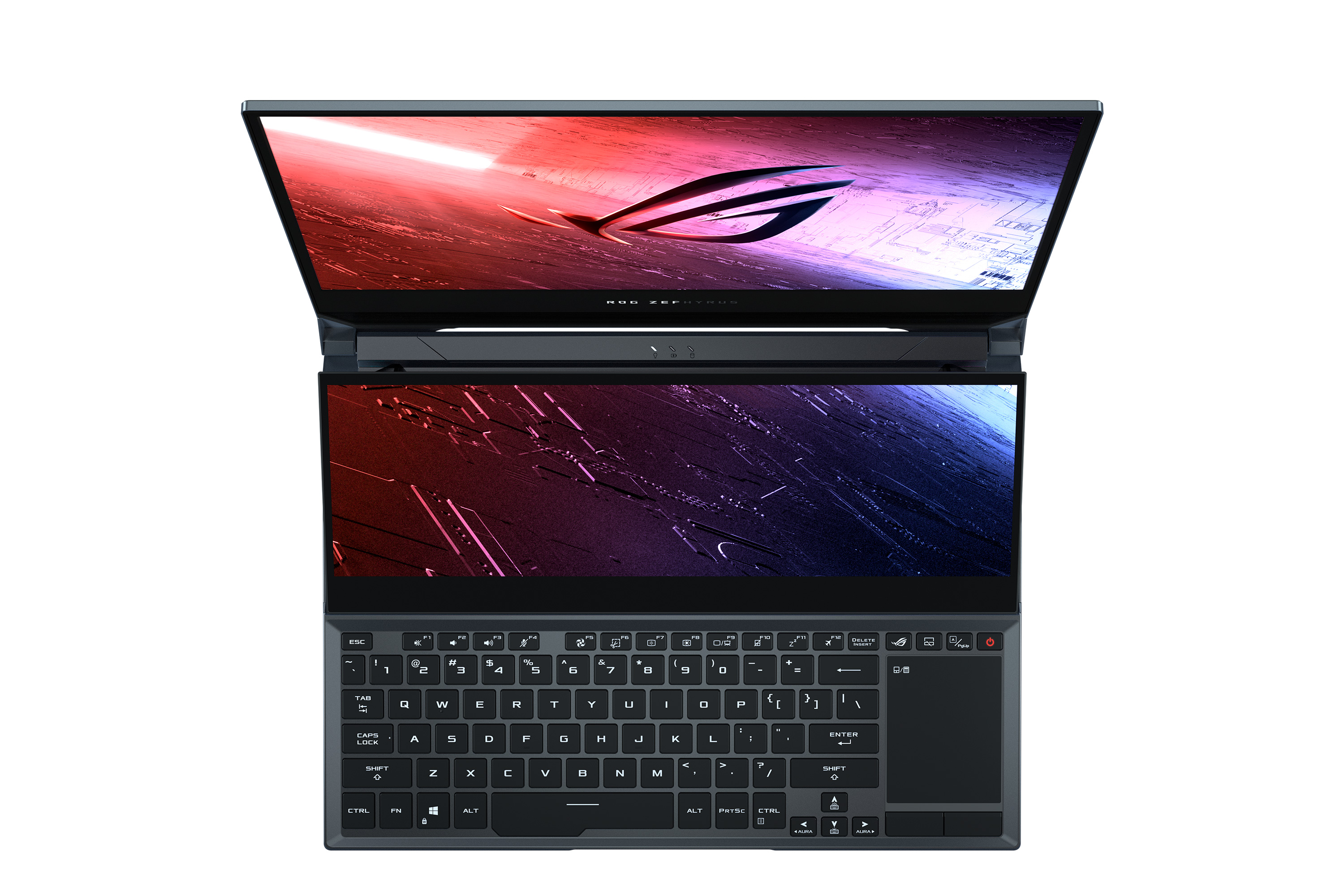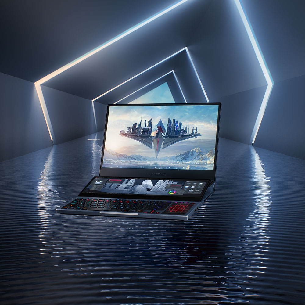 Încă de la dezvăluirea sa, Zephyrus Duo 15 a uimit prin designul futurist ce include ecranul tactil secundar ROG ScreenPad Plus, aducând un nou nivel de interacțiune în gamingul pe laptop. Zephyrus Duo 15 păstrează o formă ultra-subțire fără a sacrifica niciuna dintre performanțele înalte care definesc marca ROG.