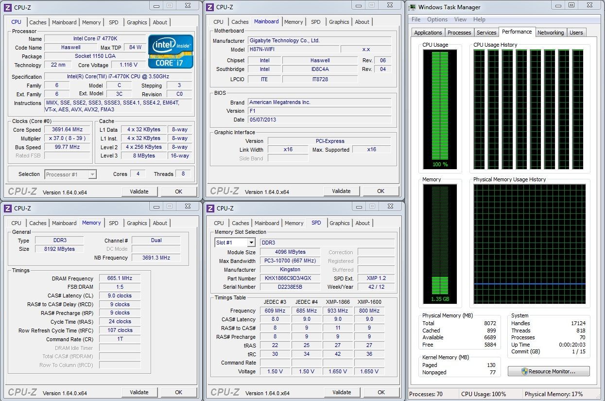 Mi se pare puţin exagerat să foloseşti un procesor cu multiplicator deblocat într-o configuraţie dacă nu intenţionezi să apelezi la overclocking. Contrar aşteptărilor mele, procesorul din Serioux NVIDIA H7 rulează la frecvenţa standard, de 3.7GHz (prin Boost). Fără urmă de îndoială, acest lucru se datorează plăcii de bază GIGABYTE ce foloseşte chipset-ul H87. Însă în această situaţie, producătorul ar fi trebuit să folosească un i7-4770, care ar mai fi scăzut puţin şi costul de producţie.