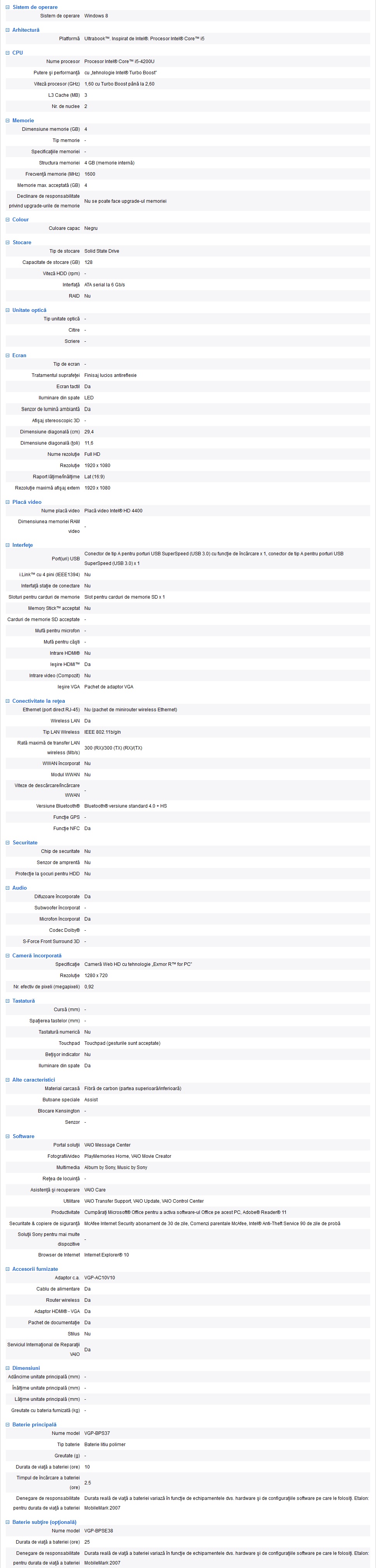 Cum este un ultrabook al anului 2013, Sony Vaio Pro foloseşte procesoare Intel Haswell (în cazul de faţă, Core i5-4200U) şi ecran tactil (în cazul de faţă, cu diagonala de 11.6” şi rezoluţie de 1920×1080 pixeli).