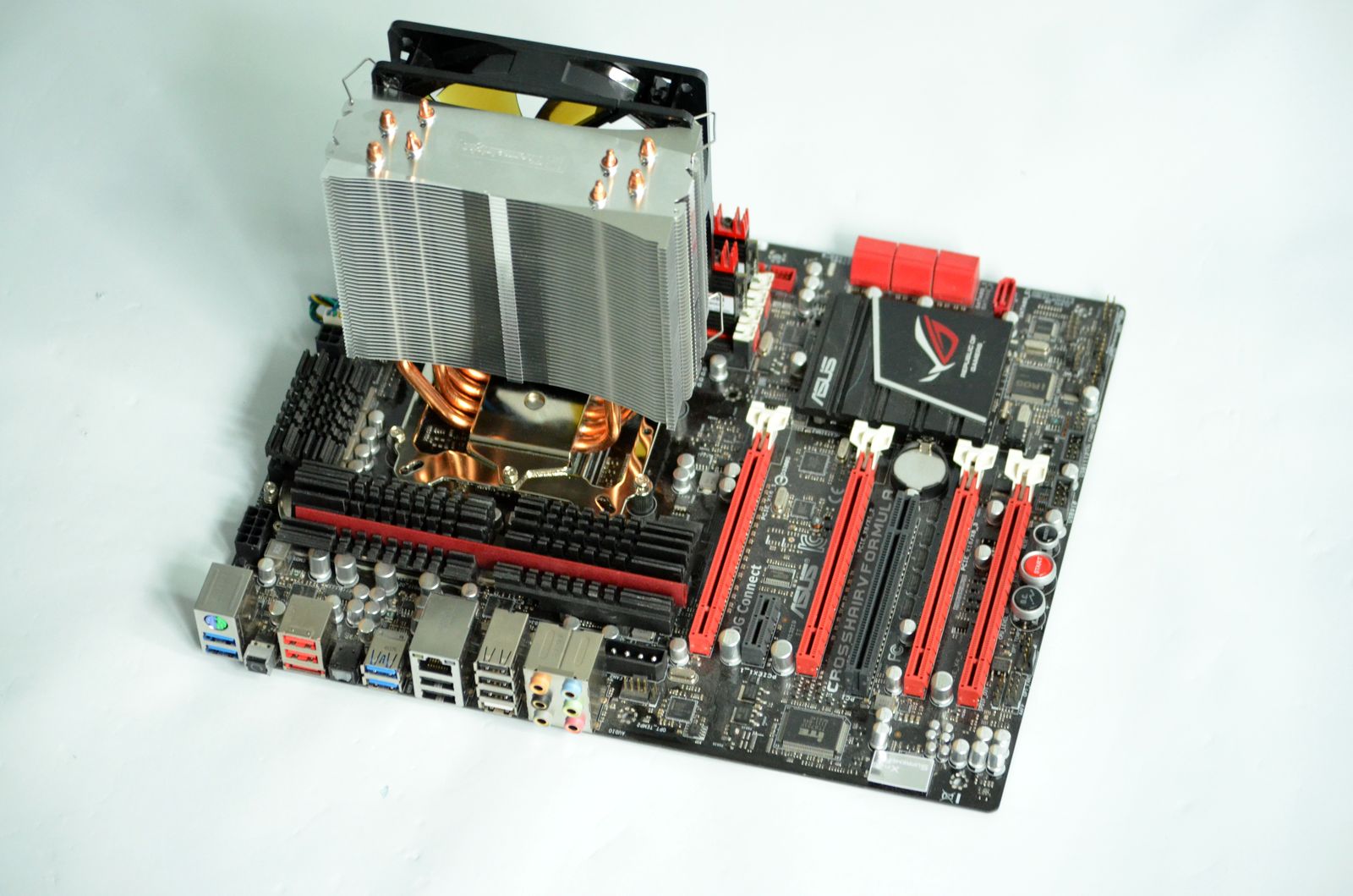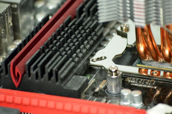 Cum vorbim despre acelaşi sistem de fixare întâlnit şi în cazul altor modele testate, avem de a face cu aceeaşi problemuţă pe placa de bază ASUS Crosshiar V Formula: una dintre componentele sistemului de fixare presează pe heatsink-ul de pe VRM.