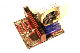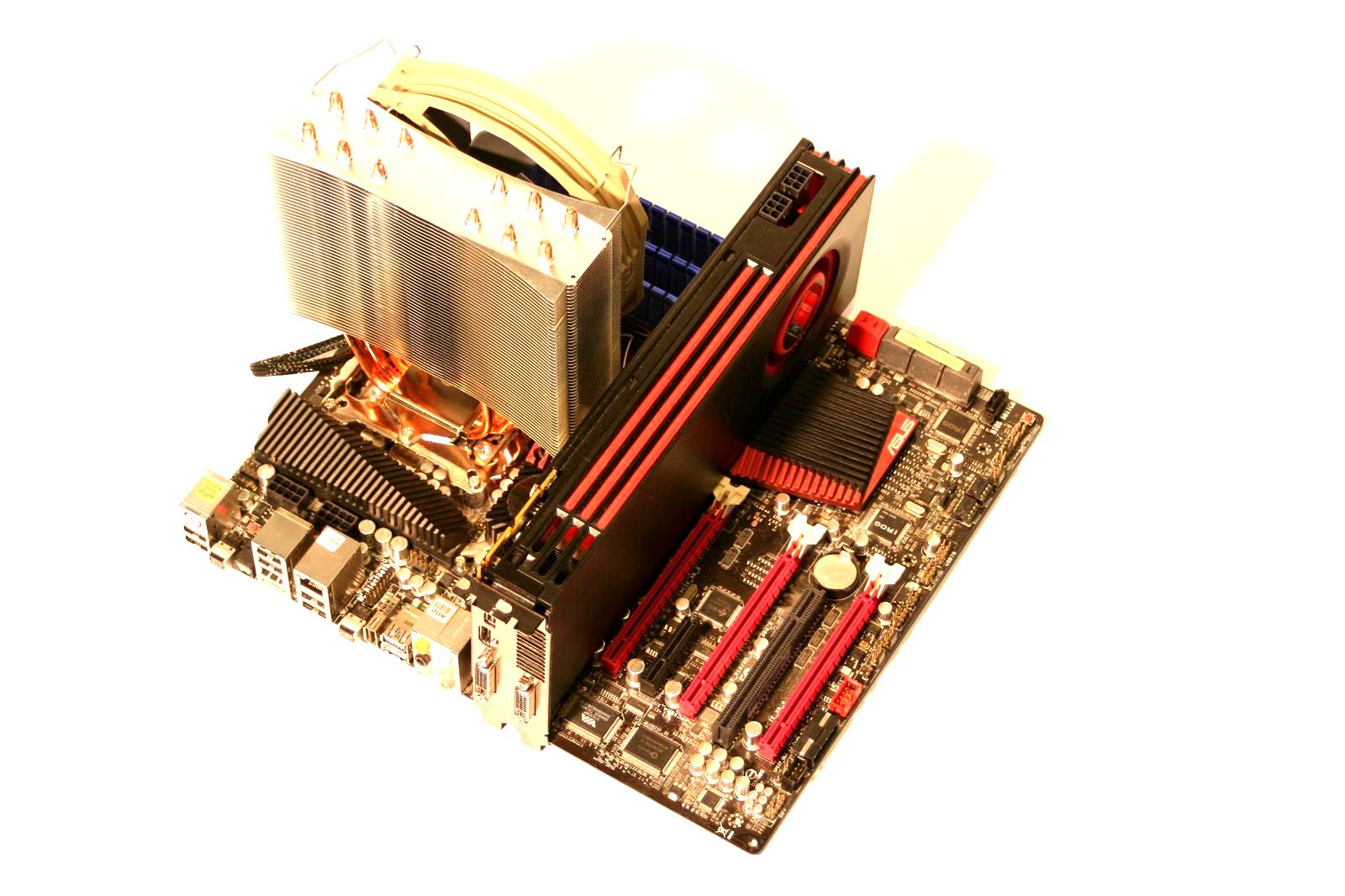 Dacă tot am schimbat platformele pentru testarea plăcilor video, memoriilor RAM şi carcaselor, le-am schimbat şi pe cele pentru testarea coolerelor. Astfel, am folosit o platformă Intel şi una AMD, alcătuite din: placa de bază ASUS Rampage III Extreme + procesor Intel Core i7 930 + memorii Kingston KHX1866C9AD3T1K3/6GX şi placă de bază ASUS Crosshair V Formula + procesor AMD FX-8150 + memorii Corsair CMT4GX3M2A1866C9. Restul componentelor utilizate au fost o placă video AMD Radeon HD 6950, o sursă de alimentare Antec Signature de 850W şi un harddisk Seagate ST3500418AS.