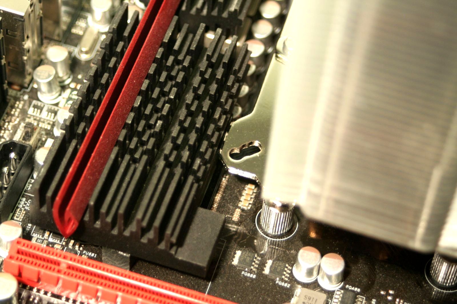 O problemă apare însă la fixare cooler-ului pe socket deoarece una dintre componentele folosite la montare este cam mare pentru spaţiul oferit de producătorul plăcii de bază, aşa că presează puţin pe heatsink-ul care răceşte chipset-ul.