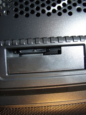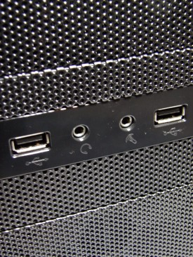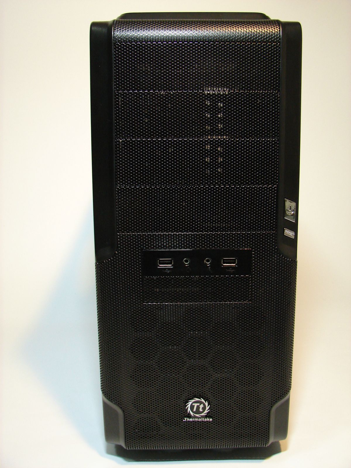 Deşi din punct de vedere ergonomic se recomandă partea superioară, Thermaltake a amplasat conectorii audio şi cele porturi USB în zona centrală. Butoanele Power şi Reset sunt confecţionate din plastic cromat şi sunt amplasate pe muchia dreaptă. LED-urile ce indică starea sistemului de calcul şi activitatea harddisk-ului sunt amplasate în spatele plasei, motiv pentru care nu sunt vizibile decât atunci când se aprind.