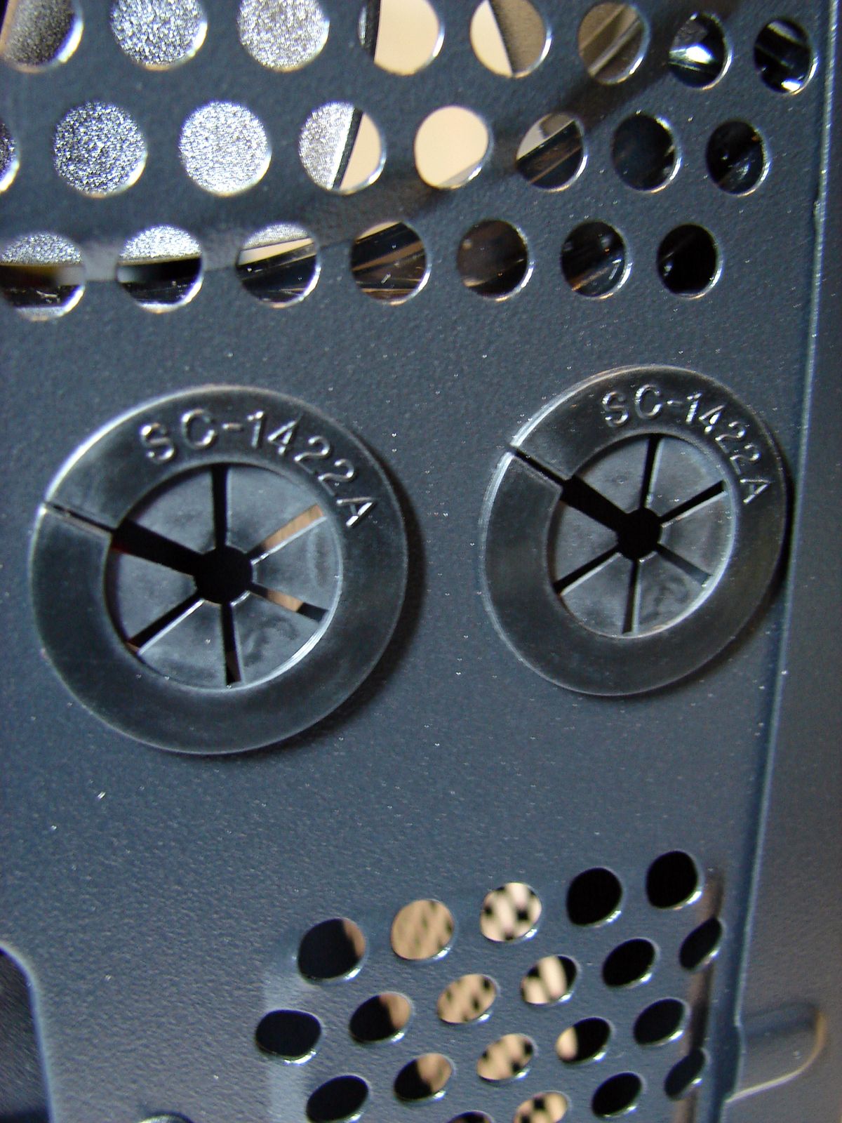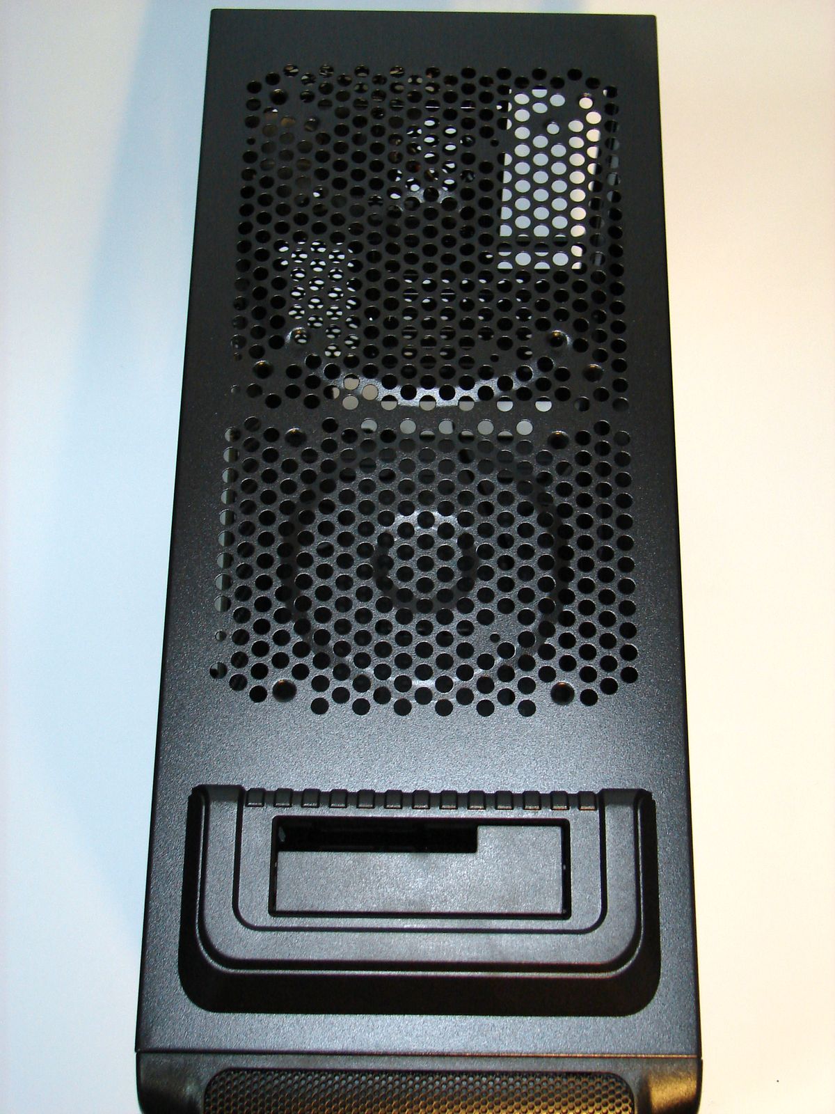 În sfârşit, producătorul a perforat şi partea inferioară, pentru a permite aerului rece să pătrundă în carcasă. Din păcate, nu este amplasat un filtru pentru praf decât în zona unde ar trebui să se afle admisia sursei de alimentare.