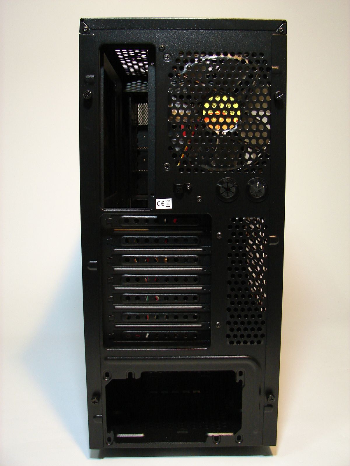 Pe partea din spate, se remarcă un ventilator cu diametrul de 120mm ce are rolul de a elimina erul cald din carcasă.