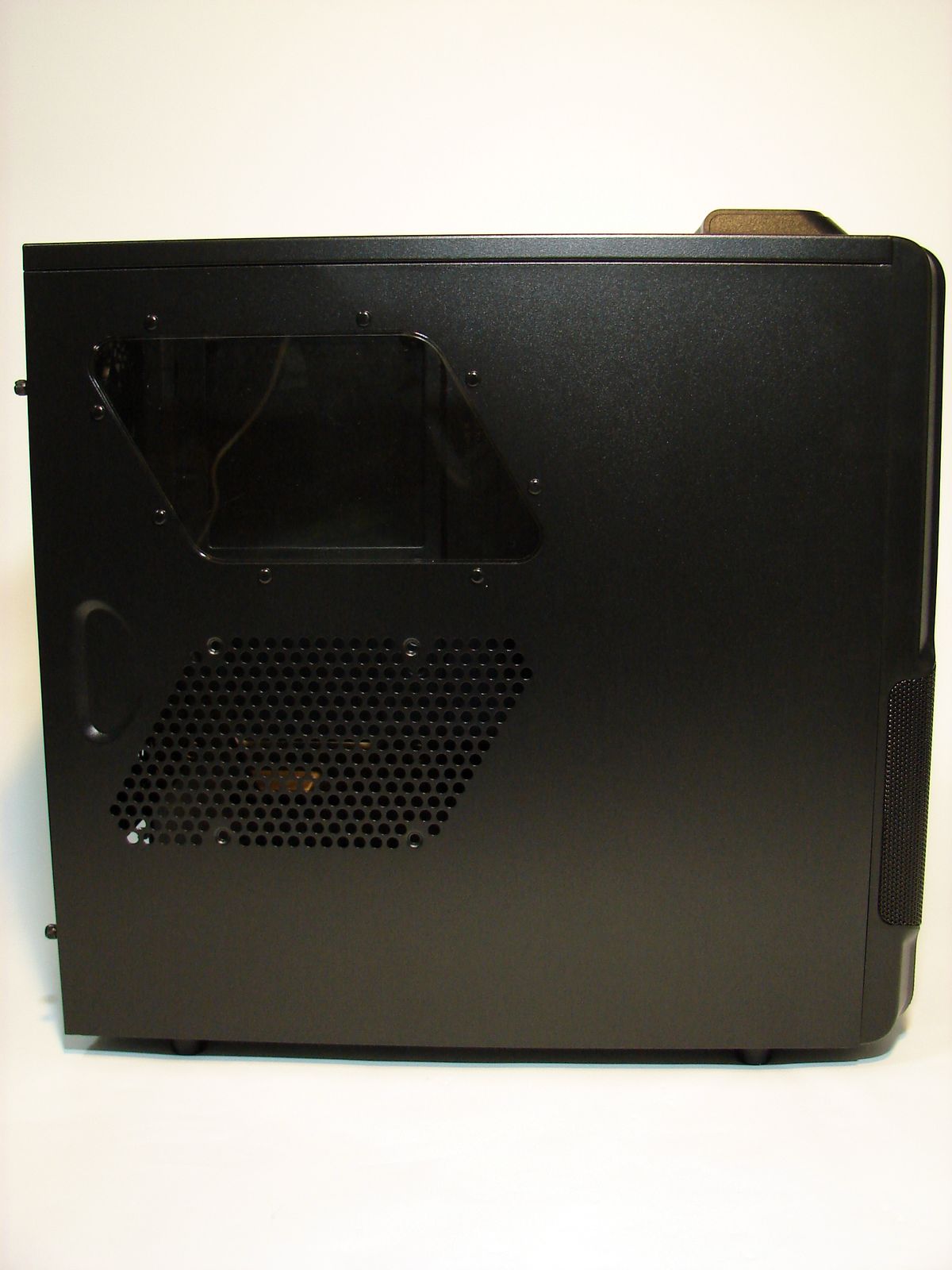 Panoul lateral stânga conţine o zonă perforată pentru admisia aerului rece, unde poate fi montat un ventilator cu diametrul de 120mm şi o fereastră din plexiglas pentru a oferi o imagine asupra configuraţiei din interior. Panoul lateral dreapta este simplu, plin.