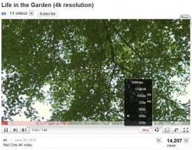 Disponibile în cadrul unei scurte liste, secvenţele 4K şi-au făcut deja aparitia pe site. Consumul de resurse este destul de ridicat, platforma de test (Phenom II 955, NVIDIA GTX260 şi Windows 7 x64) urcând la o încărcare de 45% – 50% pe procesor. Placa video nu a avut nici un aport deoarece, chiar dacă am utilizat Flash 10.1, accelerarea hardware pentru fluxurile H.264 nu a putut fi activată în momentul redării rezoluţiei 4K. Calitatea imaginii nu este atât de impresionantă pe cât ar lăsa abisala rezoluţie 4K să se creadă, ba chiar este uşor dezamăgitoare.