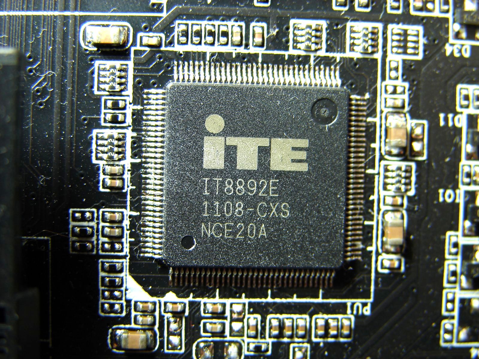Pe placă mai găsim un chip pentru monitorizare ITE IT8728F, dar şi un controller PCI ITE IT8892E.
