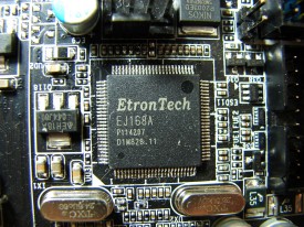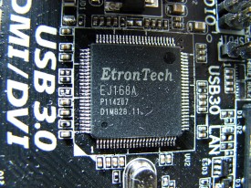 Porturile USB 3.0, atât cele de pe back panel cât şi cele disponibile prin intermediul unui header montat pe PCB, sunt disponibile mulţumită a două controllere EtronTech EJ168A.